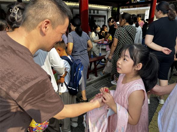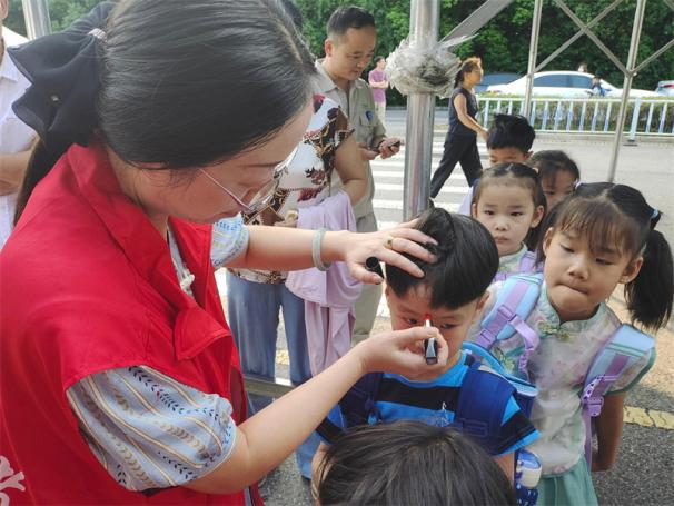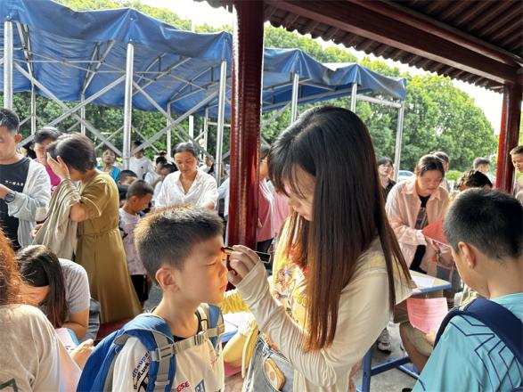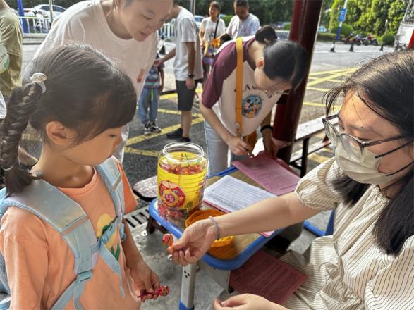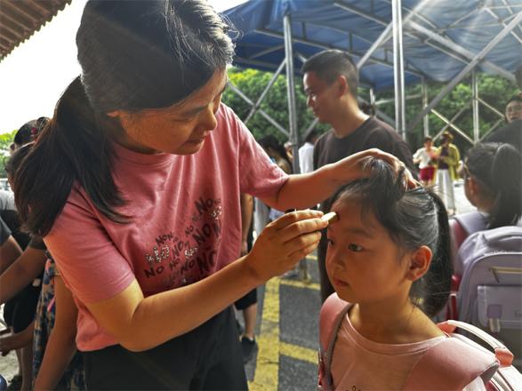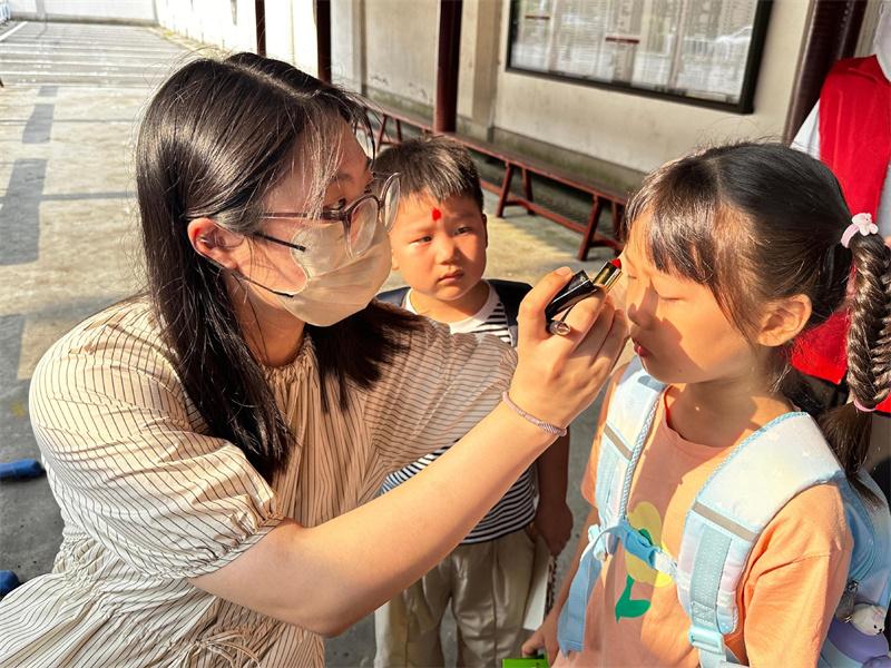 8月31日上午,一年级新生们在家长的陪同下陆续抵达校门口,各班的副班主任们早已在校门外等候着,热情而有序地迎接每一位新生的到来。和蔼可亲的老师们爱意满满地为每一位新生点上朱砂,寓意着智慧的开启,同时送上棒棒糖,以甜甜的味道传递对新生们的美好祝愿。