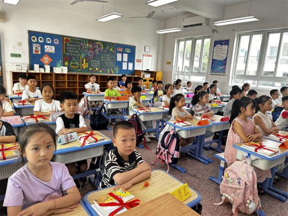 为了迎接一年级新生的到来,老师们早早就开始忙碌起来,用心布置每一间教室。她们的身影在教室里来回穿梭,每一处细节都倾注了她们的热情与心血。整齐有序排列的桌椅,用红绸带扎好的书本,写满欢迎话语的黑板,无一不体现了老师们对新学期的无限期待与对新同学的深切关怀。每一位老师都在用自己的方式表达着对一年级新生的欢迎,让新生们刚踏入班级就感受到同小大家庭的温暖与和谐。