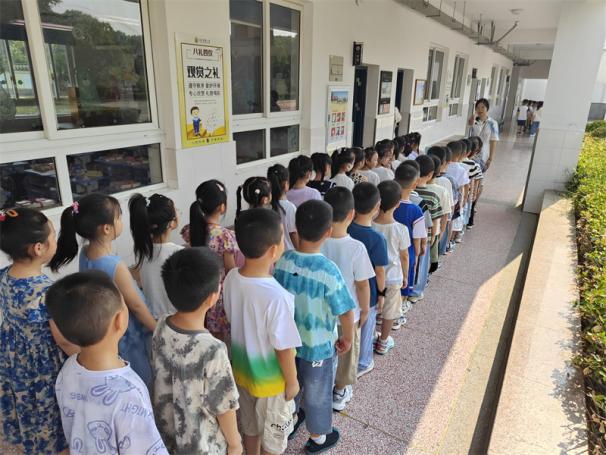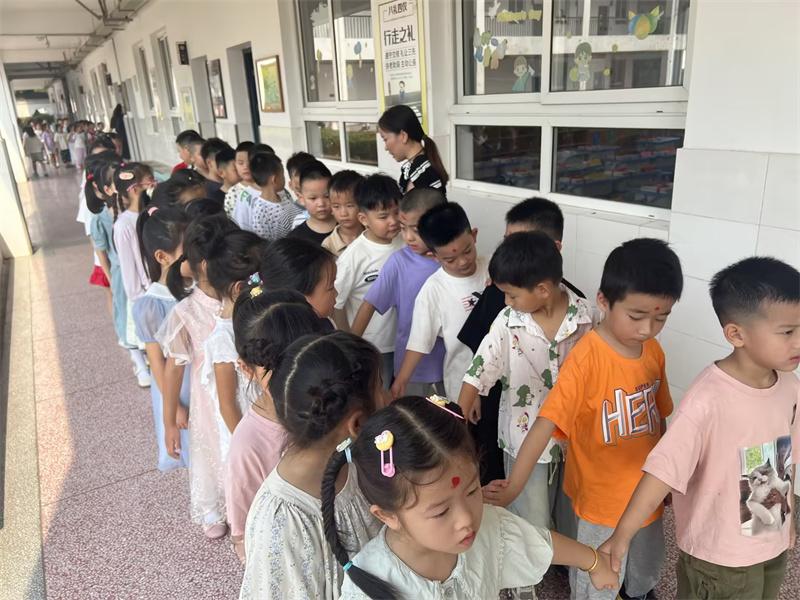 看,老师们正在给一年级新生们按照身高从低到高排队,带领他们熟悉新的学习环境呢!老师们细心地组织,确保每位新生都能在有序的队伍中开始他们的校园探索之旅。