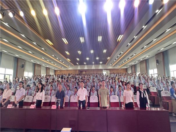 “千寻木,始于苗;百川水,朝宗遥……”伴随着熟悉的旋律,学生代表领唱校歌,全体师生齐声跟唱。校歌里的每一句歌词,都诉说着学校创始人金松岑先生“教育救国”的初心,也传递着同川学子代代相传的精神力量。激昂的歌声回荡在报告厅,让红色的种子在学生心中悄然发芽。