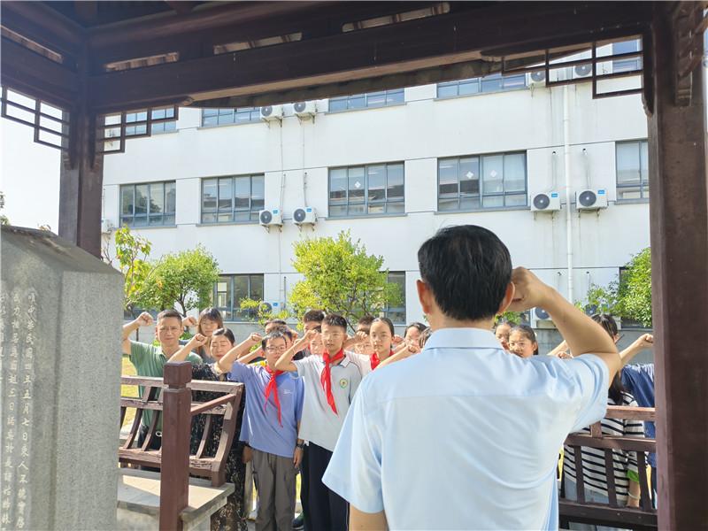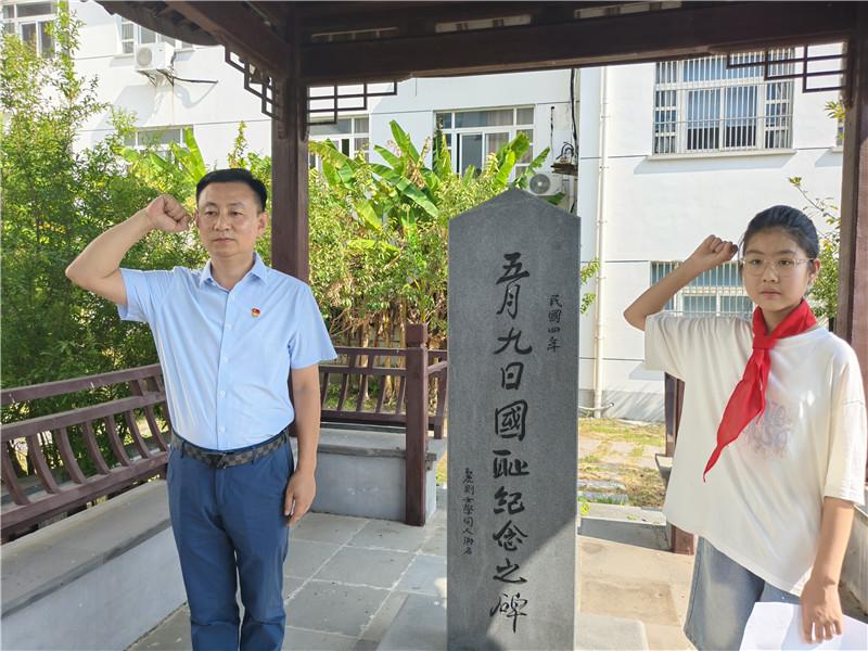 同里镇社事办主任王斌受邀为典礼致辞。她结合9月3日天安门广场阅兵式的重要意义,从校园“雪耻亭”内的“五九国耻纪念碑”切入,回顾80多年前同里地区的抗战历史,点明纪念碑“铭记过去、激励未来”的意义。她还勉励学生,“自强”无需等长大:课堂认真求知是“学习自强”,遇困不弃是“品格自强”,助人护校是“责任自强”,号召大家以点滴努力为己、为家乡、为祖国“变强”。
