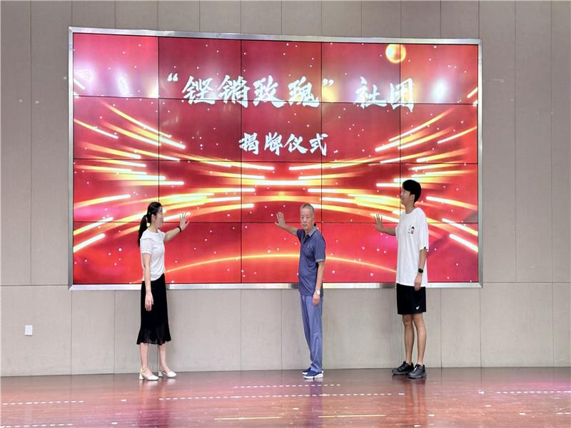 同里镇关工委樊春琦主任、吴珍副校长与足球教练李明华为 “铿锵玫瑰” 社团揭牌,鼓励女足的队员们在绿茵场上锤炼意志、绽放活力。