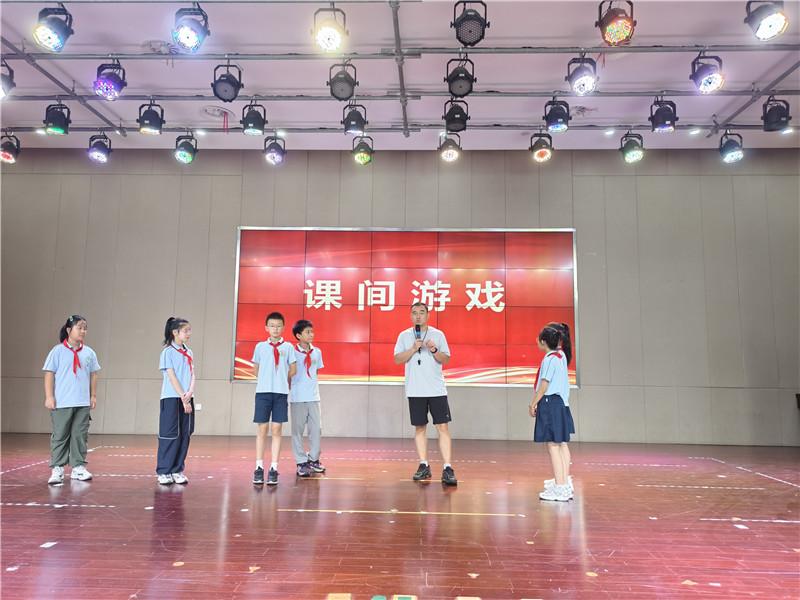 考虑到课间安全与活动质量,张玉鹏老师现场演示了趣味课间游戏 “青蛙捉小虫”。他详细讲解规则,游戏无需复杂道具,既锻炼了身体协调性,又避免了课间追逐打闹的安全隐患。张老师邀请同学上台示范,同学们纷纷表示期待在课间体验。