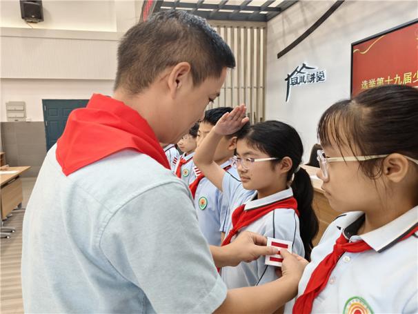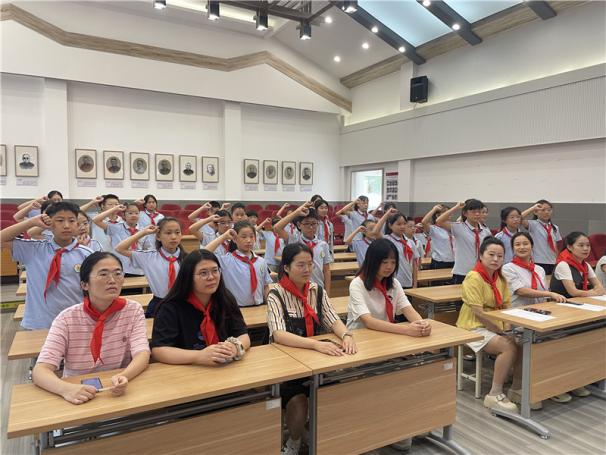 在大队辅导员的带领下,全体少先队员代表起立,右手高举右拳,庄严呼号。铿锵有力的呼号声震耳欲聋,既是对初心的重申,也是对未来的承诺,展现出少先队员的坚定信念。